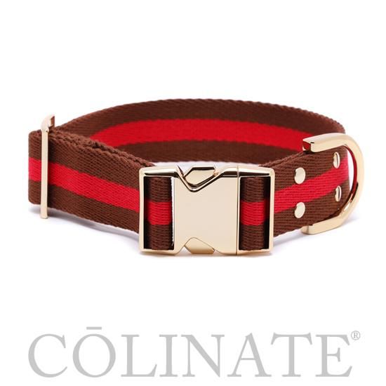 上質なストライプ・ファブリックゴールド金具を施したドッグカラー。